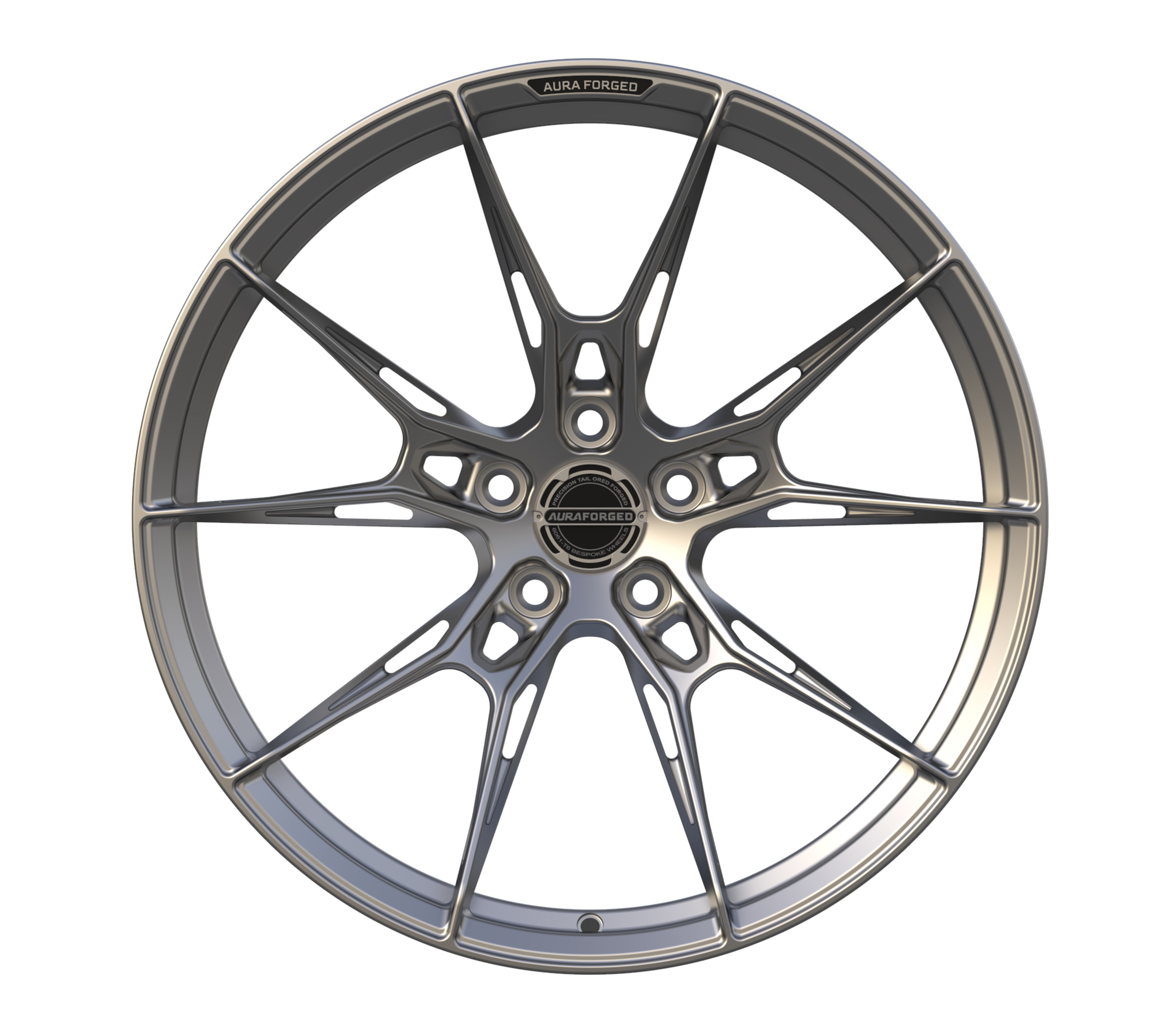 Aura forged wheels feature reinforcement ribs, strategically engineered to enhance structural integrity without unnecessary weight. These precision-designed ridges improve rigidity and durability under extreme conditions.